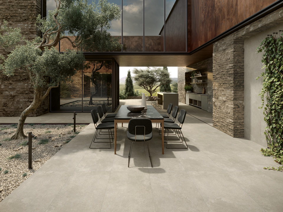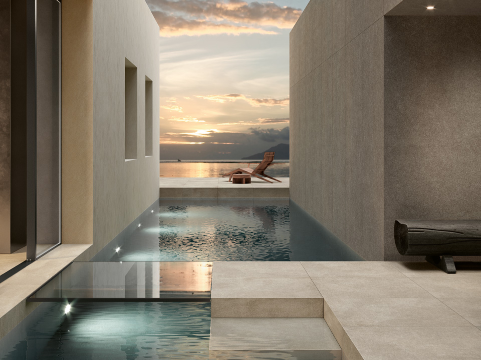 Keramische Oberflächen von Cotto d’Este verkörpern diese Entwicklung: keine einfachen Verkleidungen, sondern echte Gestaltungswerkzeuge, die Volumen, Proportionen und Licht definieren. Eine Architektursprache, inspiriert von den Meisterwerken von Le Corbusier und den Smithsons, aber auch geprägt von aktuellen Formen, in denen Keramik zum erzählerischen Element des Raums wird.