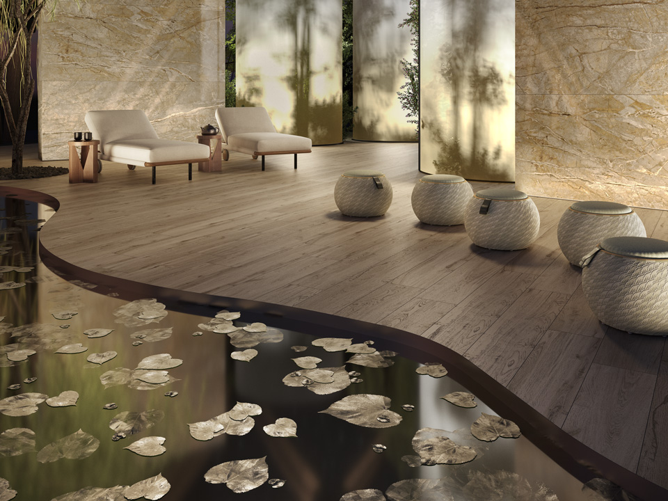 Nature Luxe ist das Manifest einer neuen ästhetischen Sensibilität: von der Natur inspiriert, perfekt in der Ausführung. Die Oberflächen von Cotto d’Este entstehen aus dem Zusammenspiel von Wissenschaft, Kreativität und Schönheit und verwandeln das Material in ein Erlebnis. Sie imitieren die Natur nicht – sie interpretieren sie: machen sie ewig, formen sie durch technisches Know-how und Vorstellungskraft zu reiner Architektur.