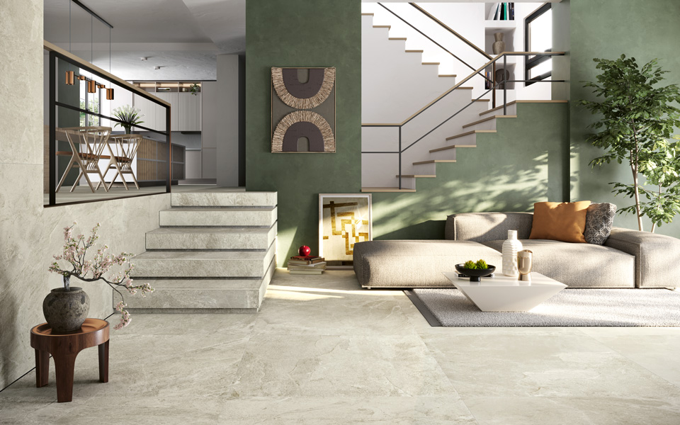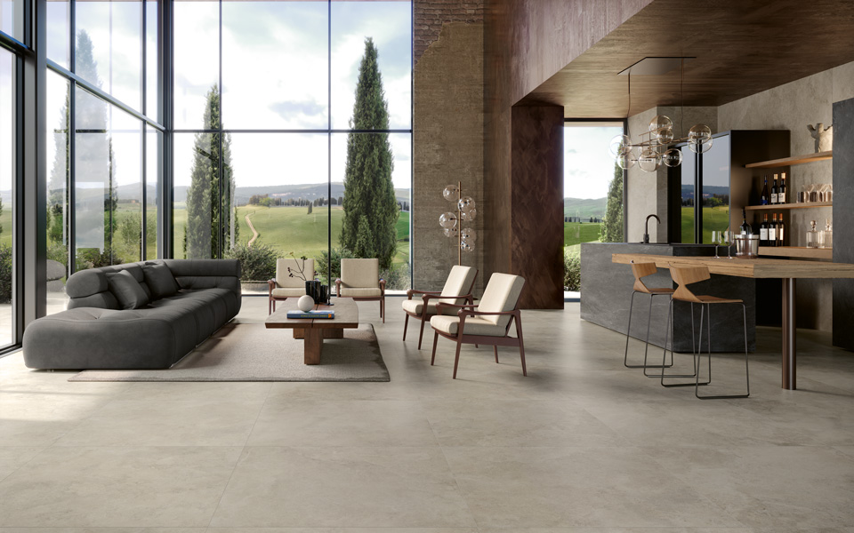 Möchten Sie Ihr Wohnzimmer renovieren? Entdecken Sie unsere Feinsteinzeugfliesen für Wohnzimmer in zahlreichen naturgetreuen Optiken.