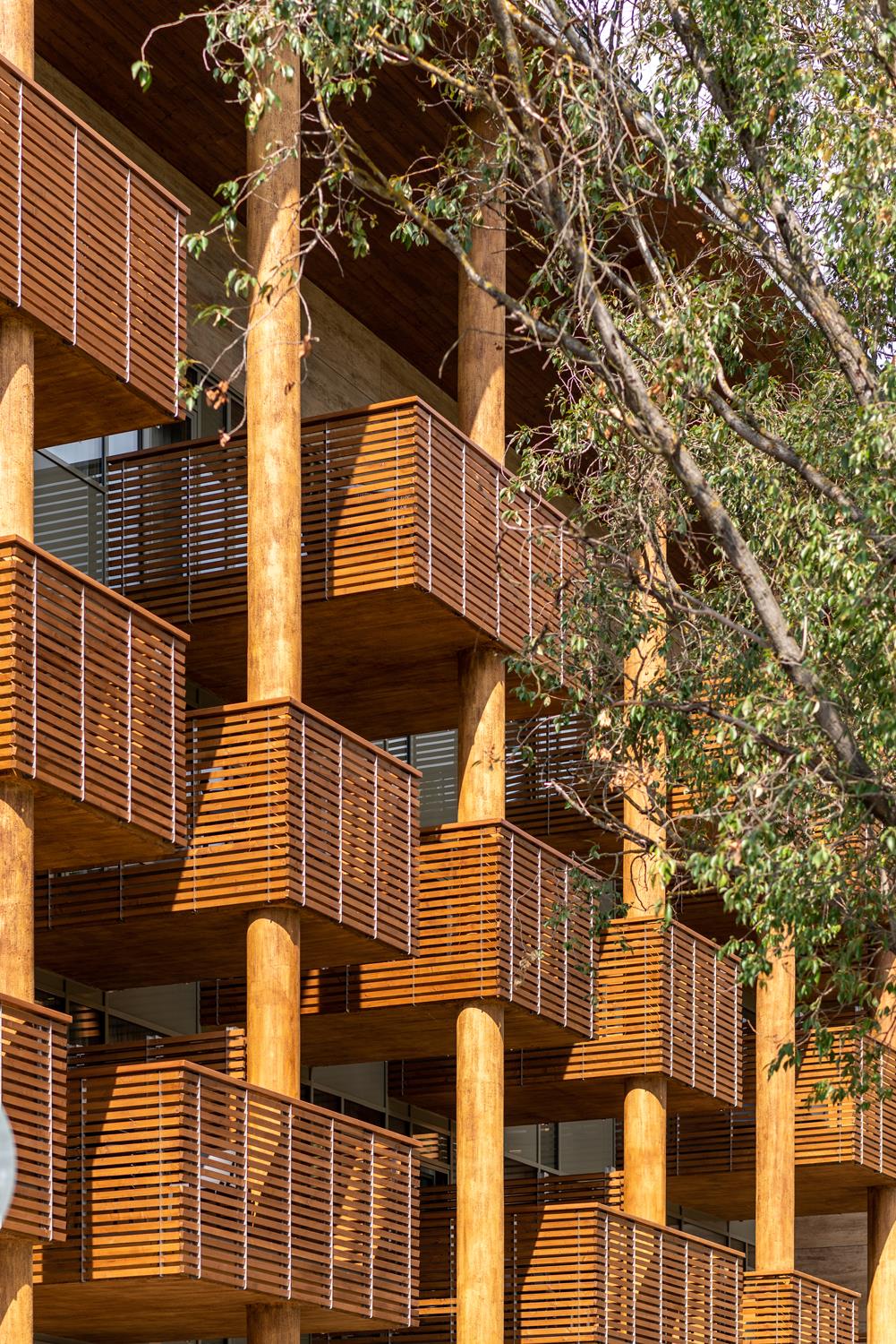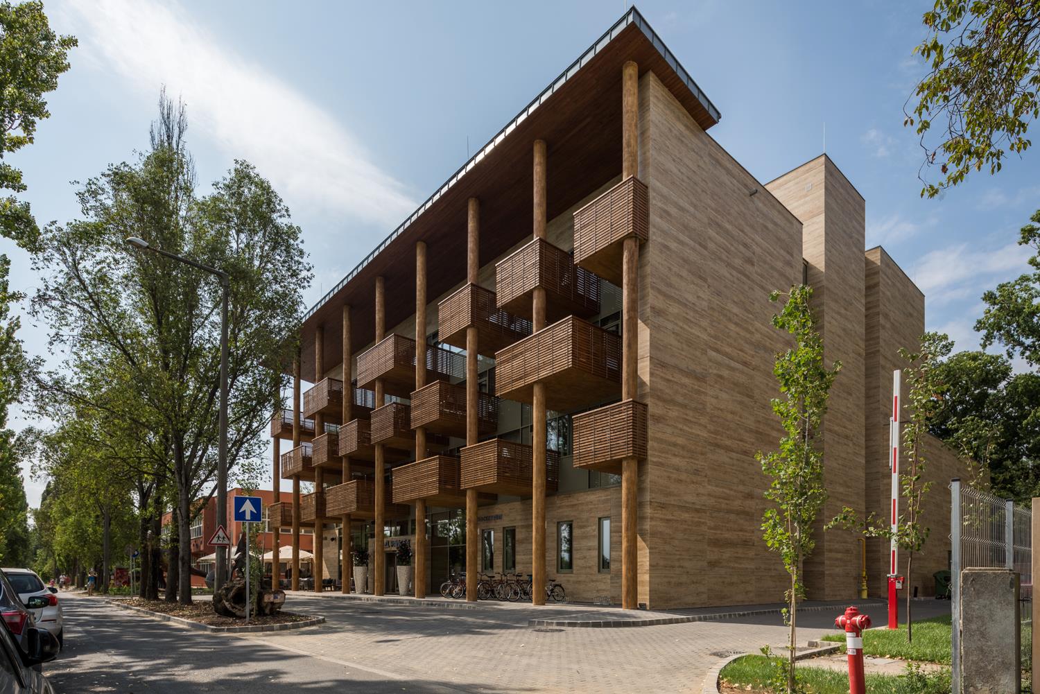 So wurde die hinterlüftete Außenverkleidung im Hotel und im Eingangsbereich des Nyíregyháza Zoos mit der Kerlite 5plus FOREST hergestellt. Die Kollektion ist vom Holz in seiner besonders rustikalen und natürlichen Form inspiriert und gibt absolut realistische Details wie die Unterschiede in Rauheit und Relief, die für gealterte Holzfasern typisch sind, wieder.