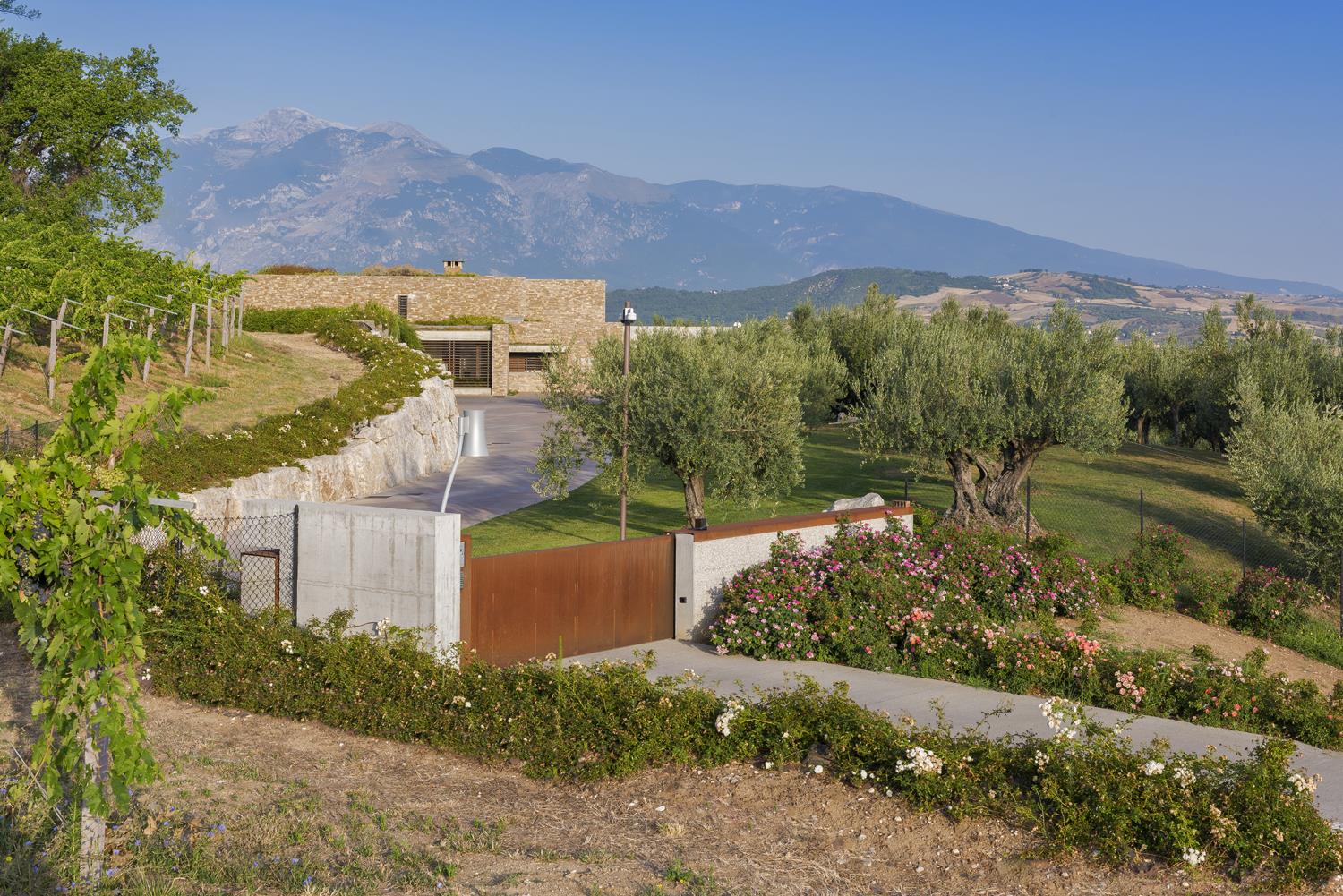 Das Projekt einer Privatvilla zwischen den Hügeln der Abruzzen von ASV3 – Officina di Architettura und Architekt Valbonesi ist dem Wunsch entsprungen, geradezu mit dem Gelände zu verschmelzen und dabei Formen und Materialien einzusetzen, die die Beziehung zur üppigen Landschaft widerspiegeln. So liegt dieses Haus in einem Hügelgebiet in der Nähe von Atessa. Die Front des Gebäudes ist zum Tal hin ausgerichtet und eine Seite ist vor einem direkt davor gelegenen Waldgebiet geschützt.
