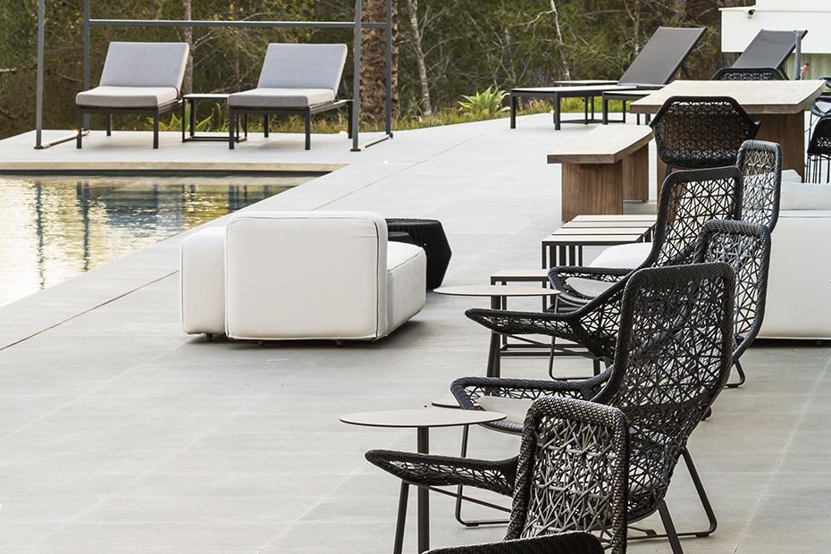 Cotto d’Este ist in diesem eleganten und ausgesuchten Raum mit seinen kostbaren Oberflächen präsent, die ausgewählt wurden, um den Außenbereich um das Schwimmbecken und ein paar horizontale Flächen der Innenräume fertigzustellen.
