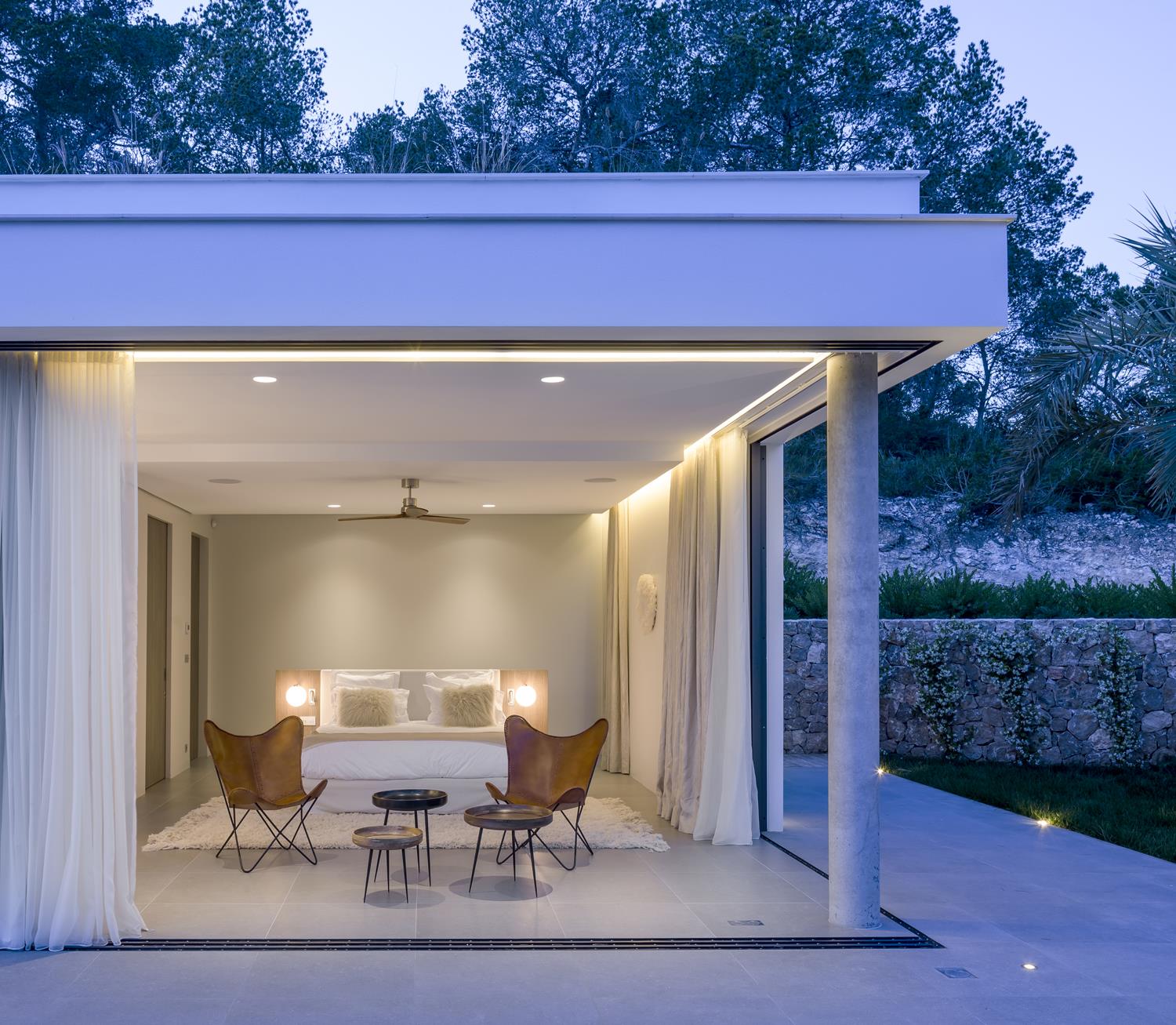 Vier Hektar Boden direkt an einem Pinienhain, eine Grünfläche nur 15 Minuten von der Stadt Ibiza entfernt. Hier hat ein Architektenpaar - Axel Schoenert und Zsofia Varnagy – beschlossen, seine Villa und Zufluchtsstätte zu bauen.