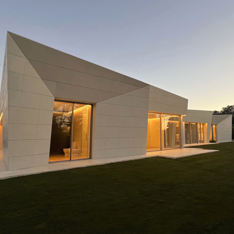 Absoluter Star des Hauses ist die Farbe Bianco aus der Kollektion Blutech. Der warme Farbton wurde in der Oberflächenkombination Naturale und Juta und in den Formaten 90 x 90, 60 x 60 und 30 x 60 cm gewählt, um alle Boden- und Wandflächen im Außenbereich abzudecken. Blutech ist die Kollektion, die eine Weiterentwicklung der technischen Fliesen aus unglasiertem Feinsteinzeug darstellt. Die Durchfärbung lässt eine äußerst gepflegte Ästhetik entstehen, wo Oberfläche und Masse denselben Farbton aufweisen, sodass eine homogene, kompakte Farbpalette, bereichert durch Ton-in-Ton-Nuancen garantiert ist.